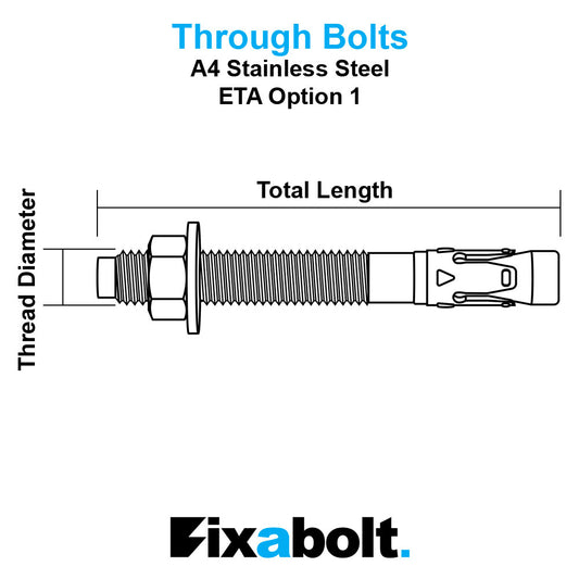 M8 x 75mm Through Bolt Stainless Steel A4 (ETA Option 1)