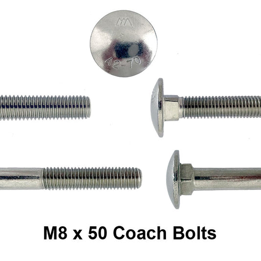 M8 x 50mm Coach Bolt Stainless Steel A2 DIN 603