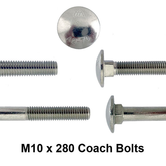 M10 x 280mm Coach Bolt A2 Stainless Steel DIN 603