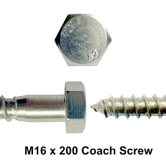 M16 x 200mm Coach Screw A2 Stainless Steel DIN 571
