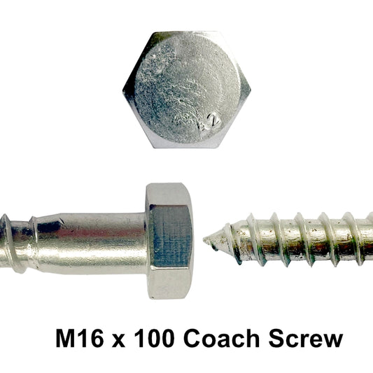 M16 x 100mm Coach Screw A2 Stainless Steel DIN 571
