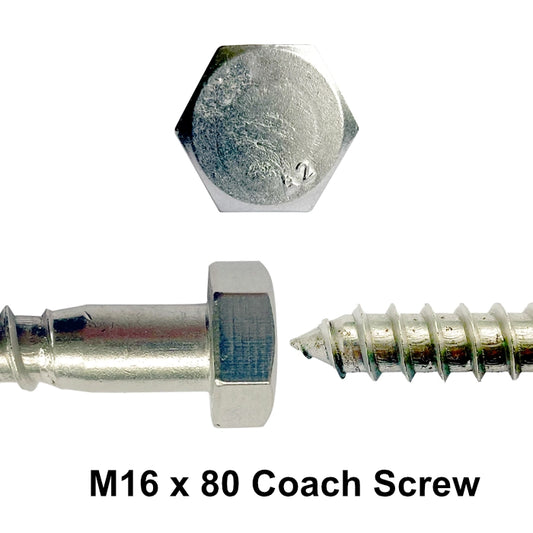 M16 x 80mm Coach Screw A2 Stainless Steel DIN 571