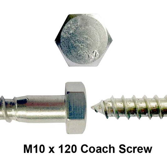 M10 x 120mm Coach Screw A2 Stainless Steel DIN 571