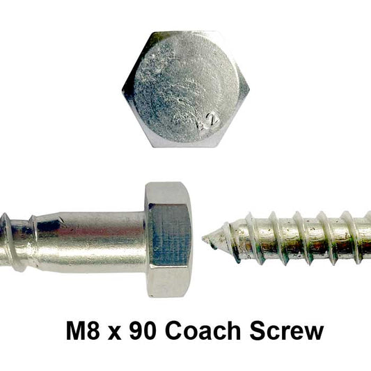 M8 x 90mm Coach Screw A2 Stainless Steel DIN 571
